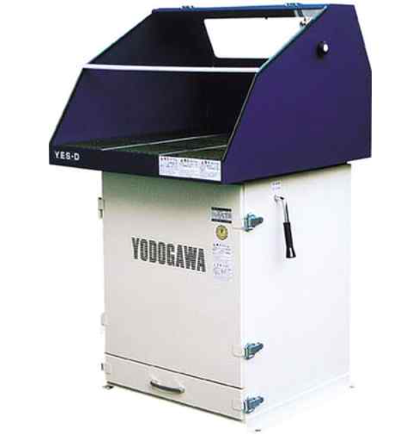 产品型号:“YODOGAWA YES400VDA”,这个产品的品牌是淀川電機,是一家日本的电机制造商,中文名叫淀川电机制作所,这个产品是一种集尘作业台,属于集尘设备的一种,主要用于打磨、吹气等产生或不能容忍粉尘的工作。